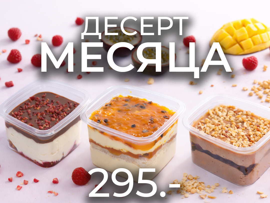 - "Манго-Маракуйя" со слоями ванильного бисквита, чередующегося с пюре манго и маракуйи;